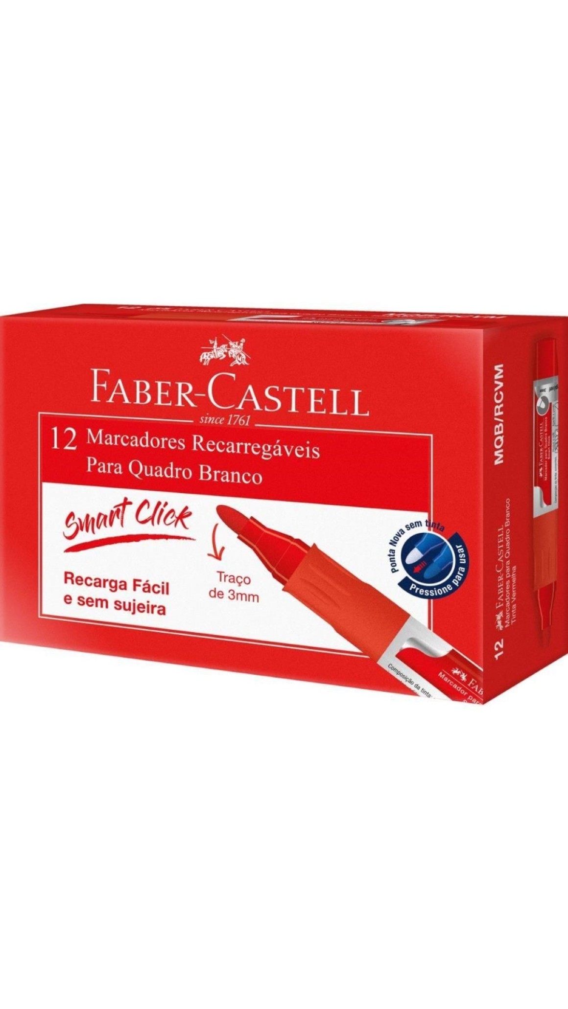 MARCADOR QUADRO BRANCO RECARR.SMART CLICK FABER-CASTELL CAIXA C/12 UNID.